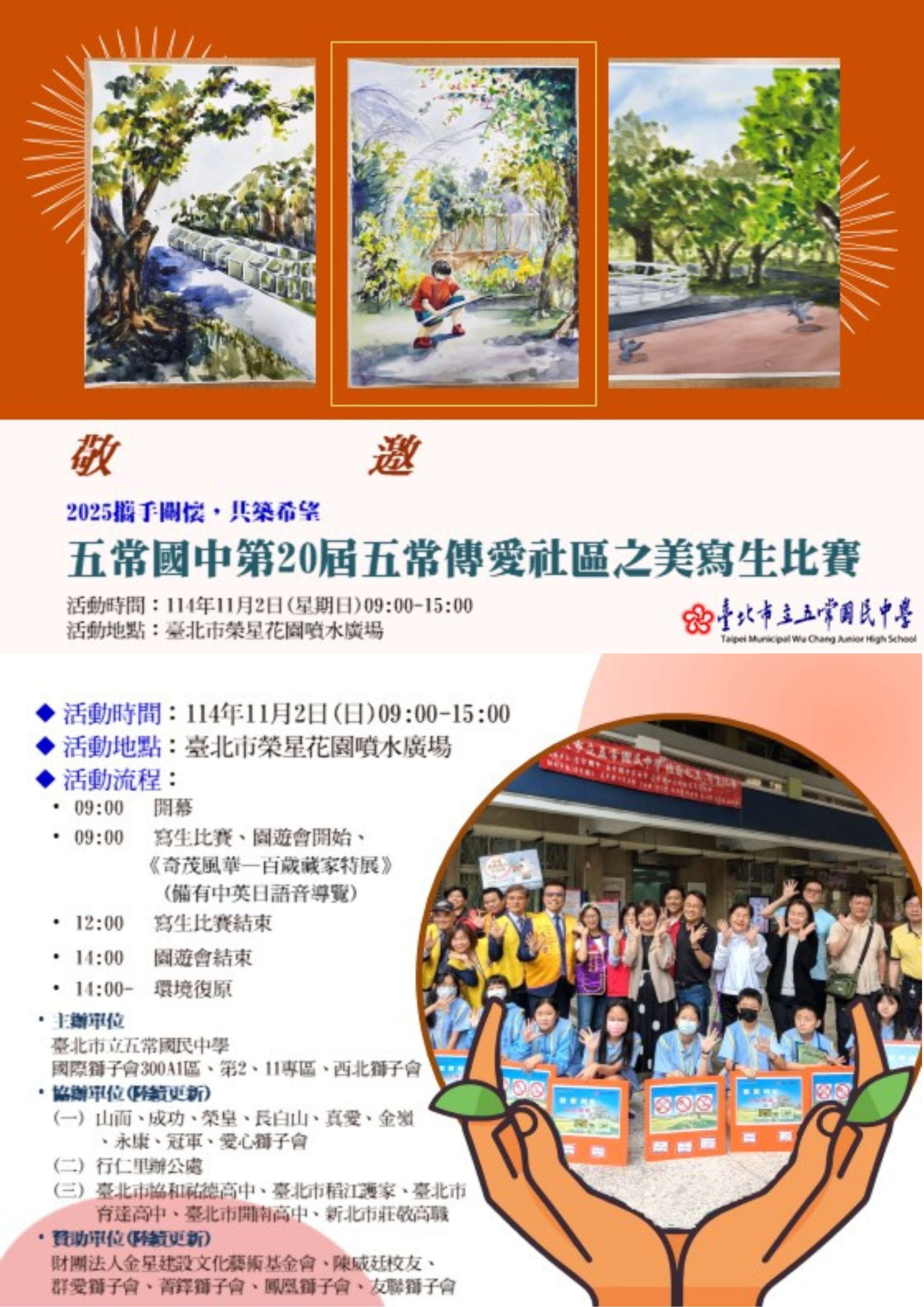一、比賽時間:114年11月2日(星期日)早上9時至15時整(寫 生比賽至12時)。