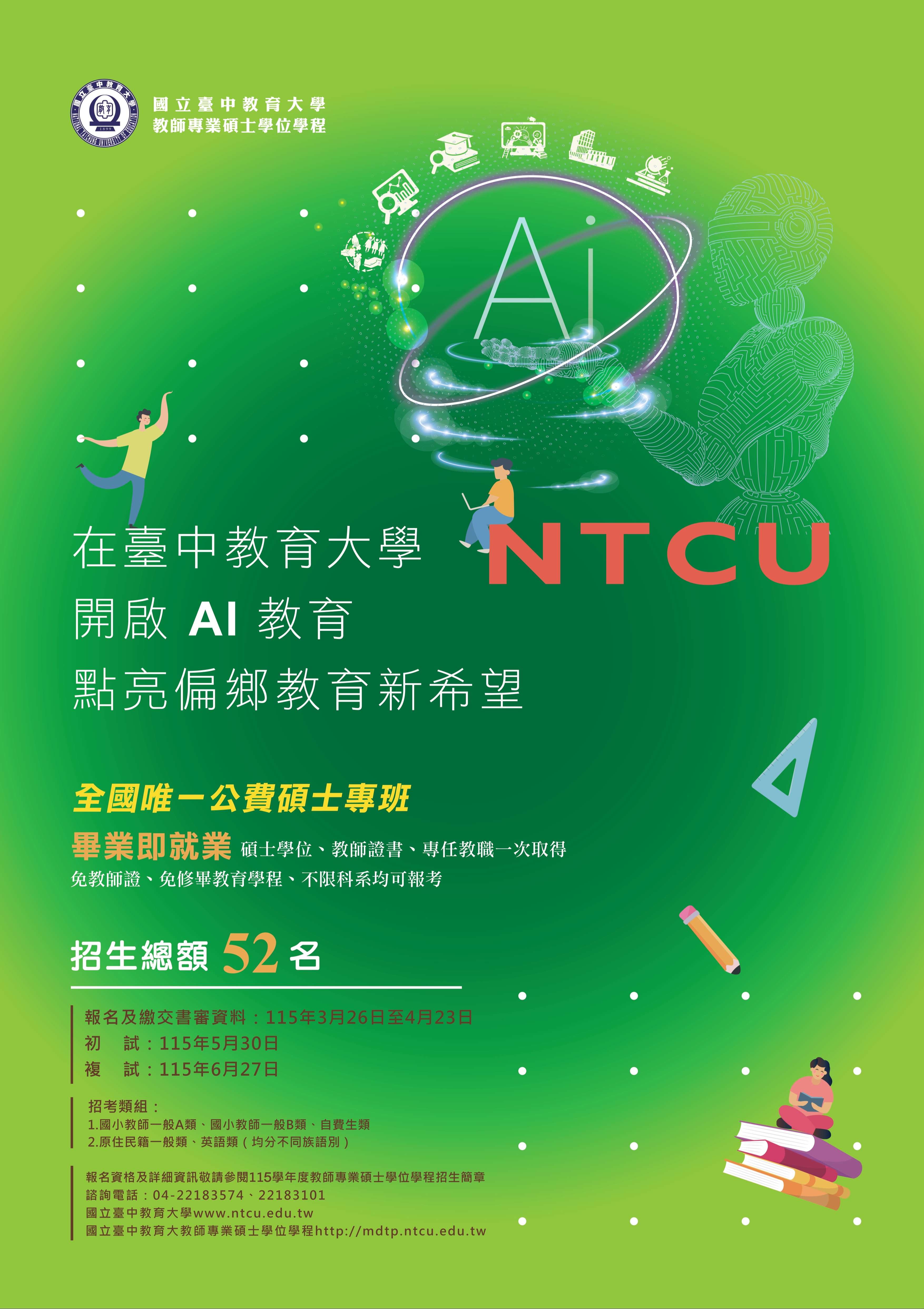 轉知-國立臺中教育大學教師專業碩士學位學程115學年度招生海報電子檔1份,詳如附件。