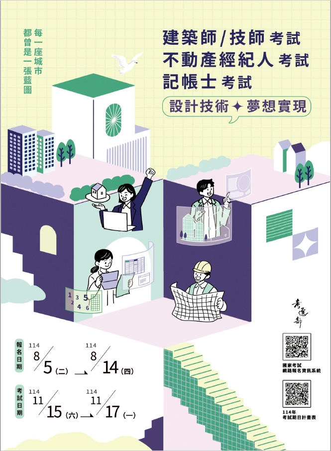 旨揭考試定於114年8月5日至14日報名,11月15日至17日舉行考試,相關報名訊息請參閱考選部網站。