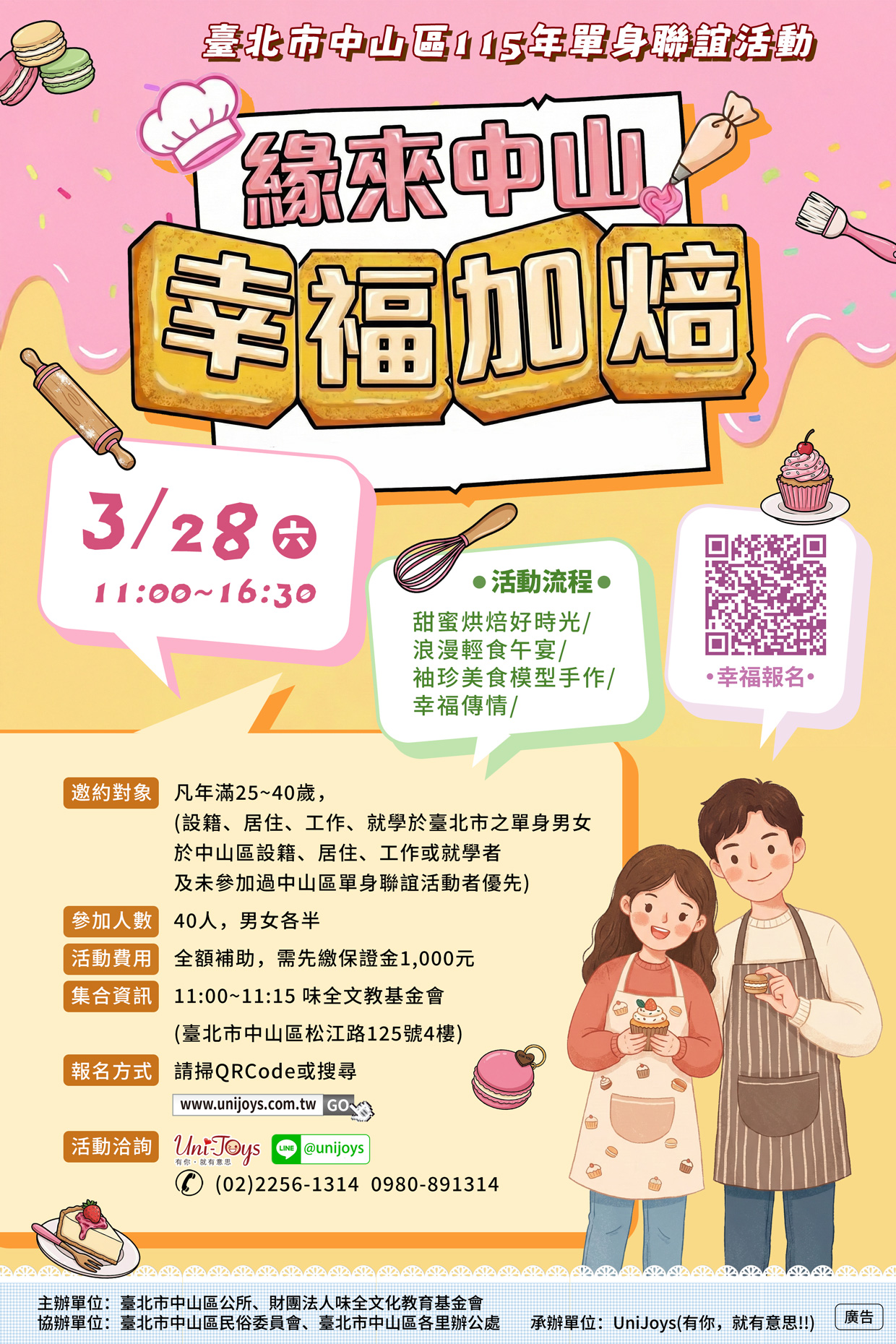 一、旨揭活動訂於115年3月28日(星期六)11時至16時30分假味全文教基金會舉辦,報名時間自115年2月2日上午9時起至115年2月26日或額滿為止。