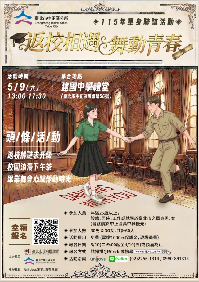一、旨揭活動訂於115年5月9日下午13時至17時30分於建國中學禮堂辦理,線上報名時間3月10日起至4月3日或額滿為止。