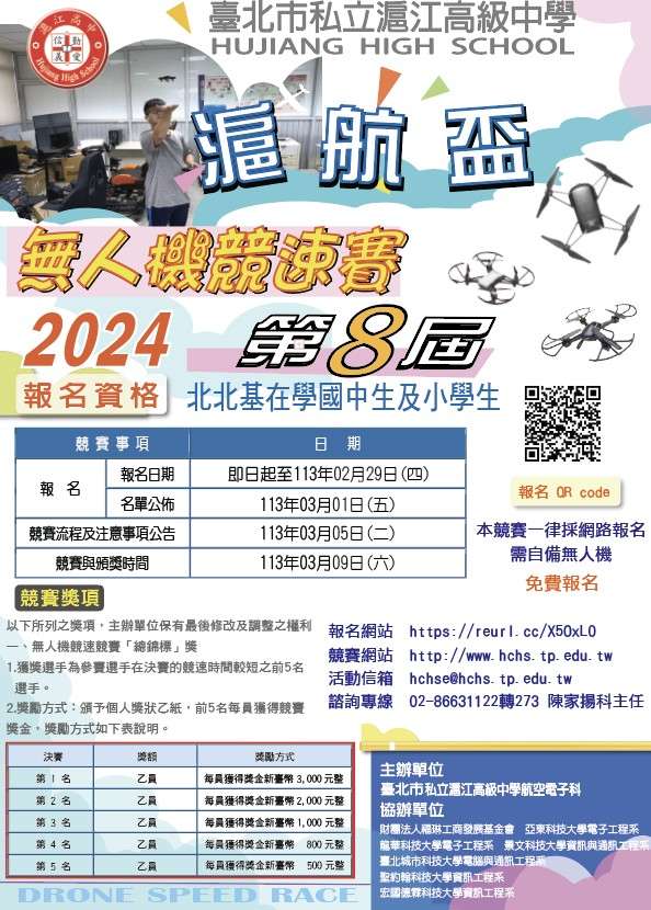 一、本校訂於113年3月9日(星期六)辦理「滬航盃」無人機競速競賽活動,實施計