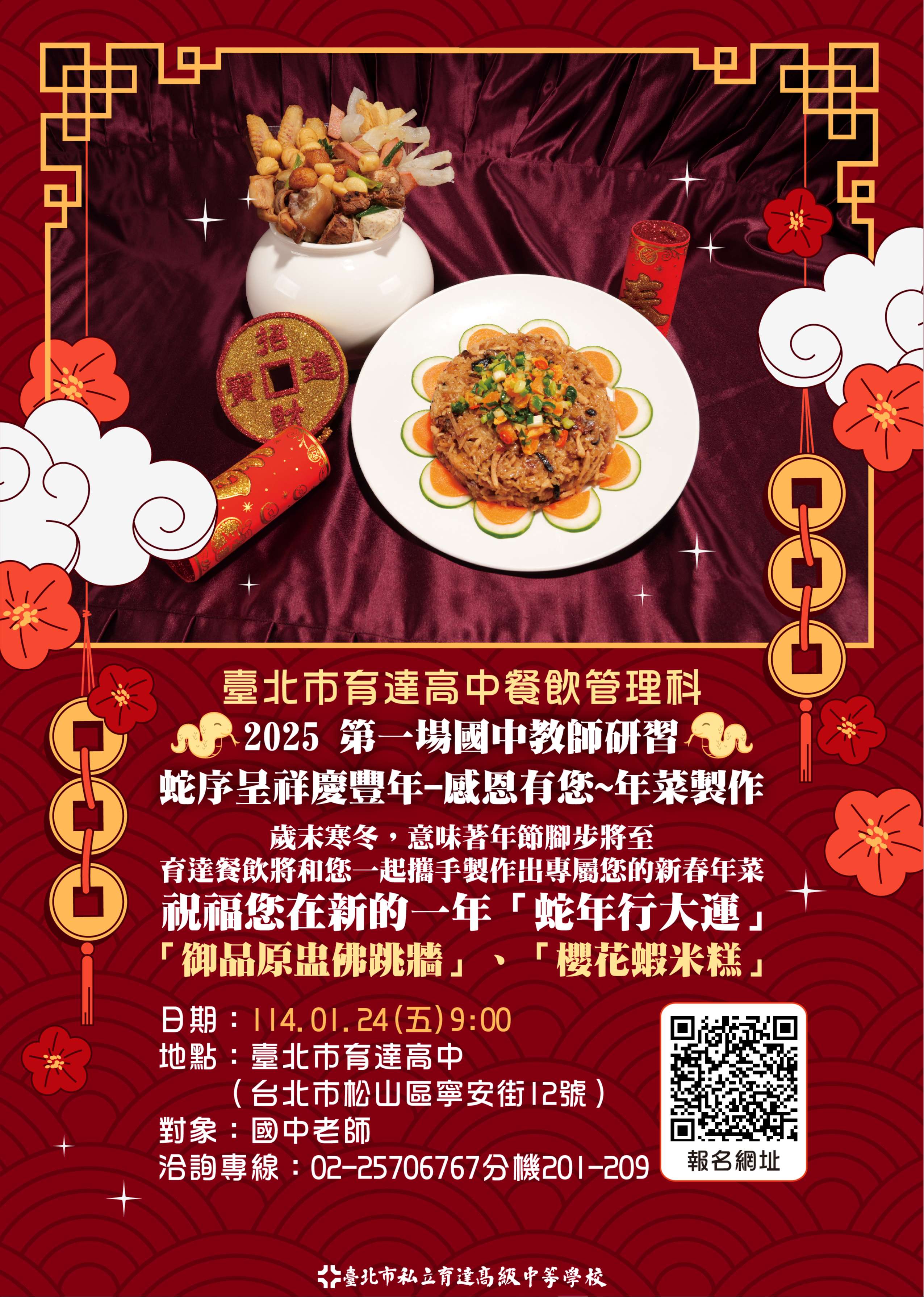 一、本校辦理2025教師研習-蛇序呈祥慶豐年-年菜製作,歡迎 各國中教師報名參加。