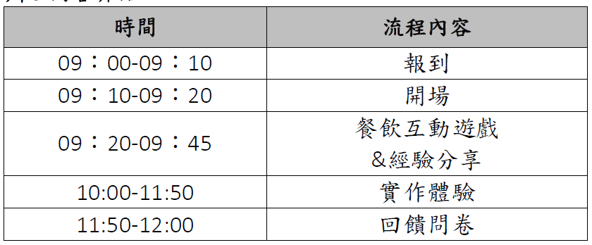 六、 活動地點 :臺北市大安區復興南路二段 148巷 24號 _開平餐飲學校 104教室。