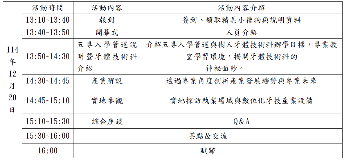 肆、活動日期:114 年12 月20 日(六)
