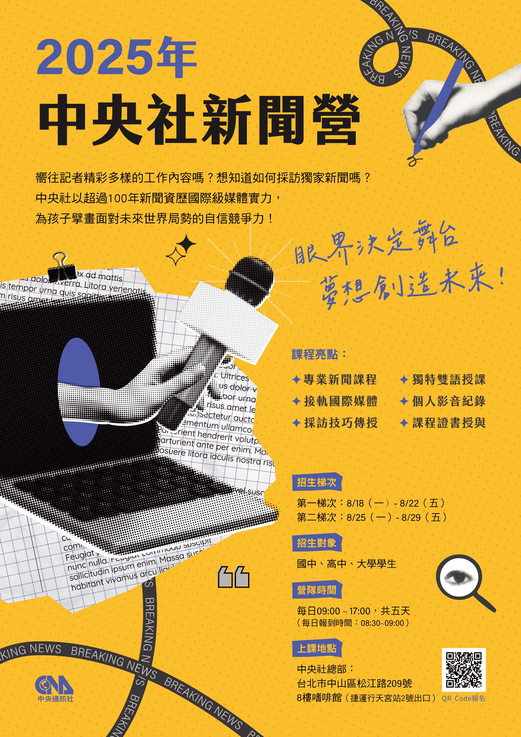 (二)新聞營:https://www.accupass.com/go /cnanewscamp2025,報名時間至2025年7月20日止。