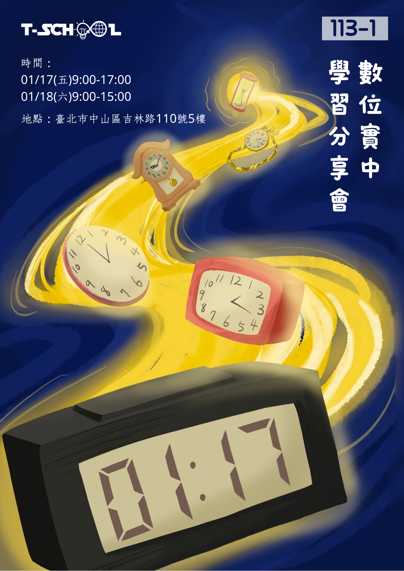 二、活動資訊如下: (一)活動日期:民國113年1月17日(五)9時至17時、1月18 日(六)9時至15時。 (二)活動地點:本校吉林校區:臺北市中山區吉林路110號4- 5樓。 (三)活動內容:靜態學習成果展示、課程短講分享。