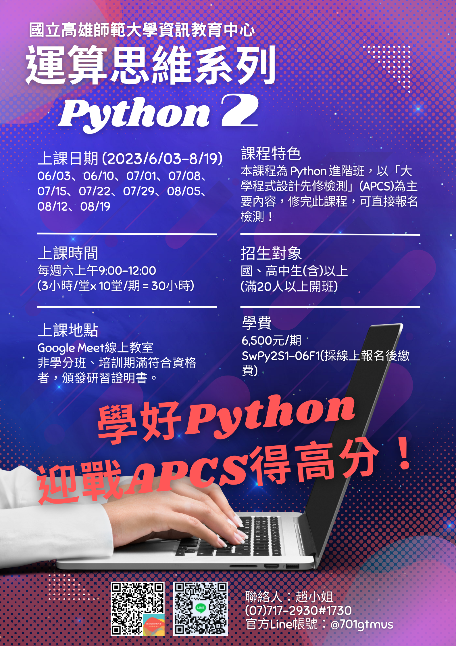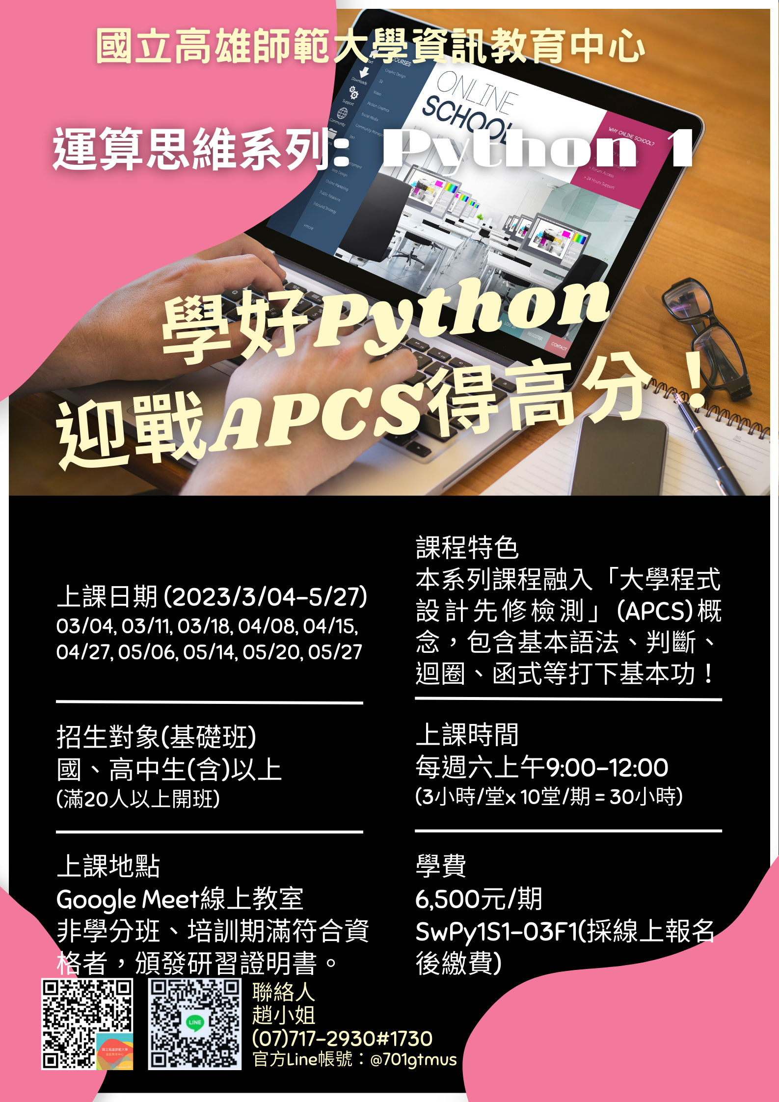 一、課程名稱:運算思維系列:Python 課程【國高中線上 班】。