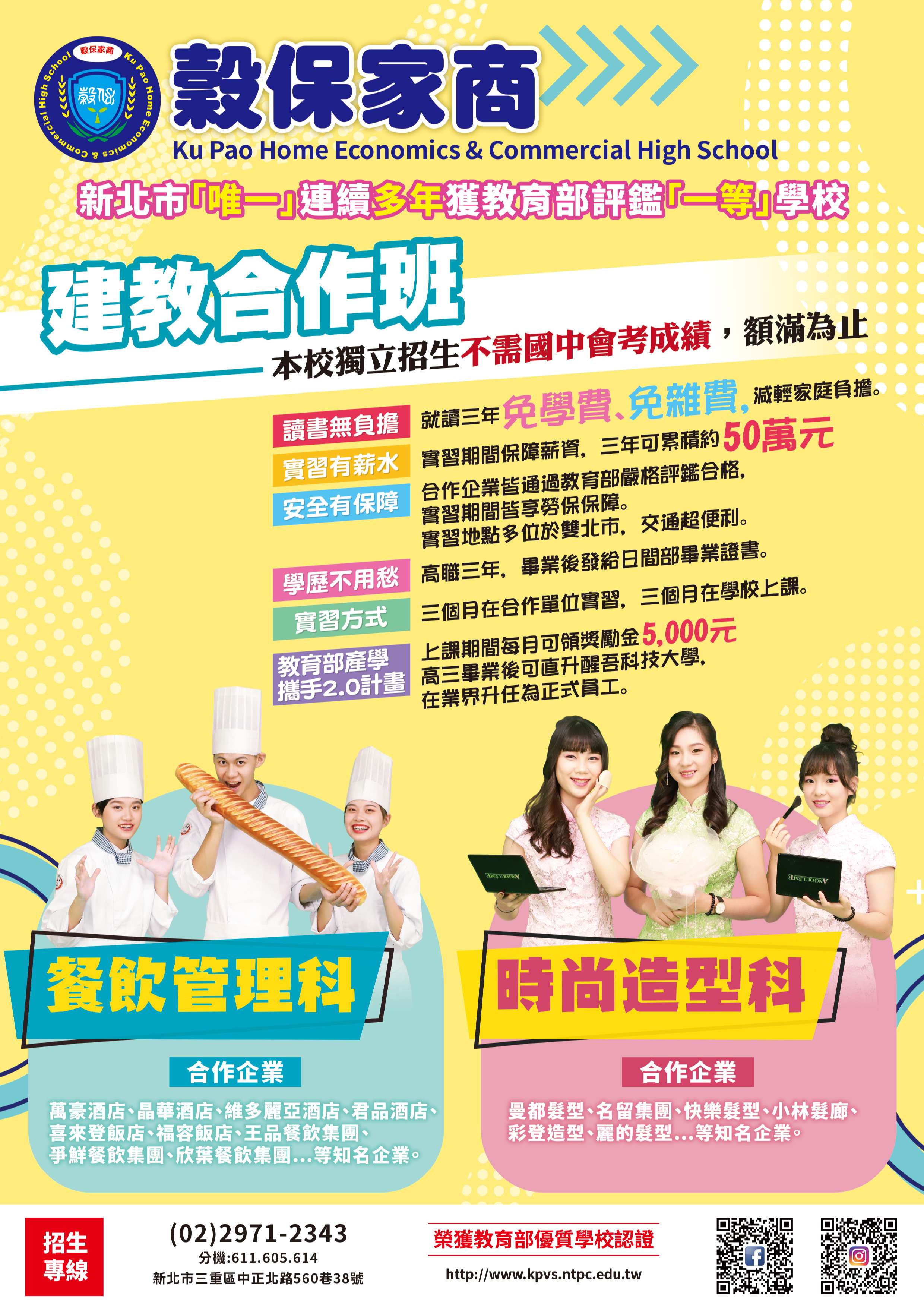 新北市穀保家商辦理112學年度建教合作班獨立招生簡章