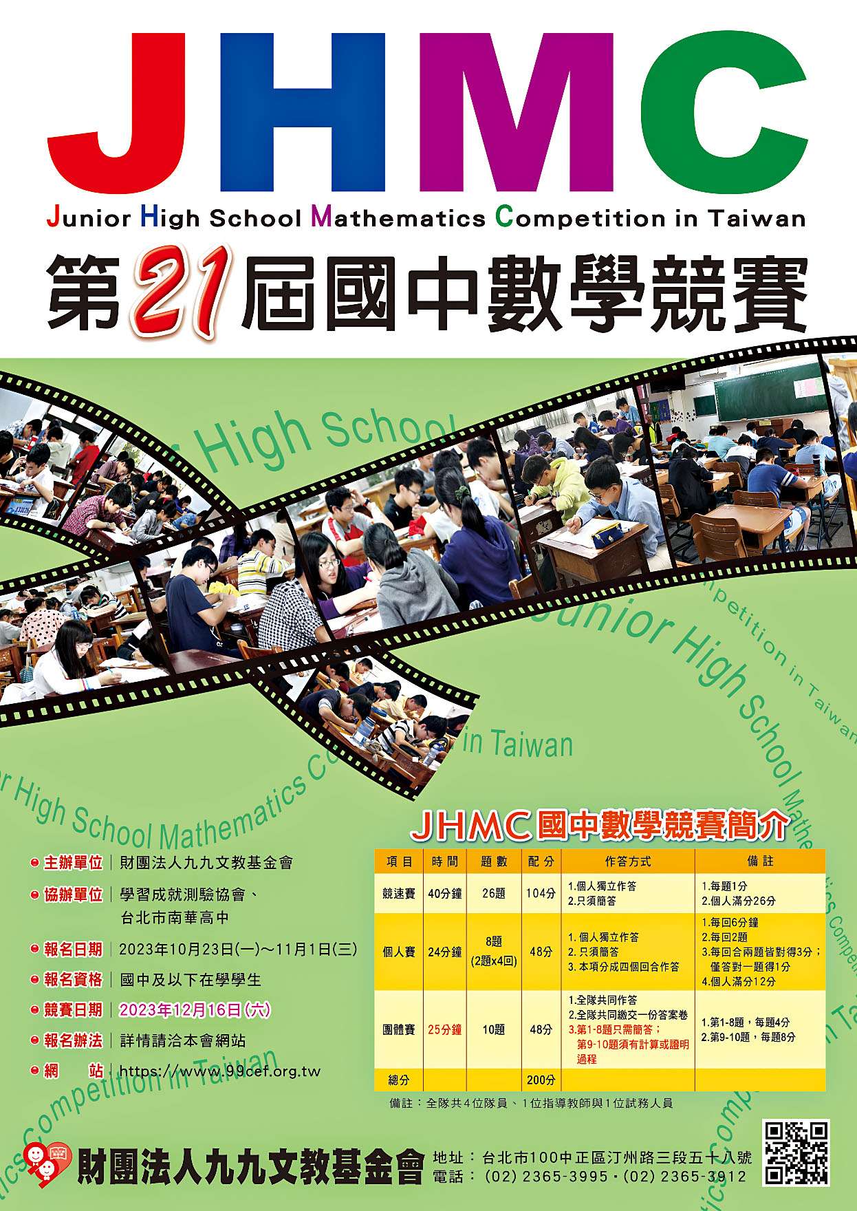 (一)、因場地限制,各地區參賽隊伍數額滿後,JHMC線上報 名系統即不再受理報名,但本會保留調整各地區隊伍數 上限的權利,敬請有意參賽之同學,儘快完成報名手 續。