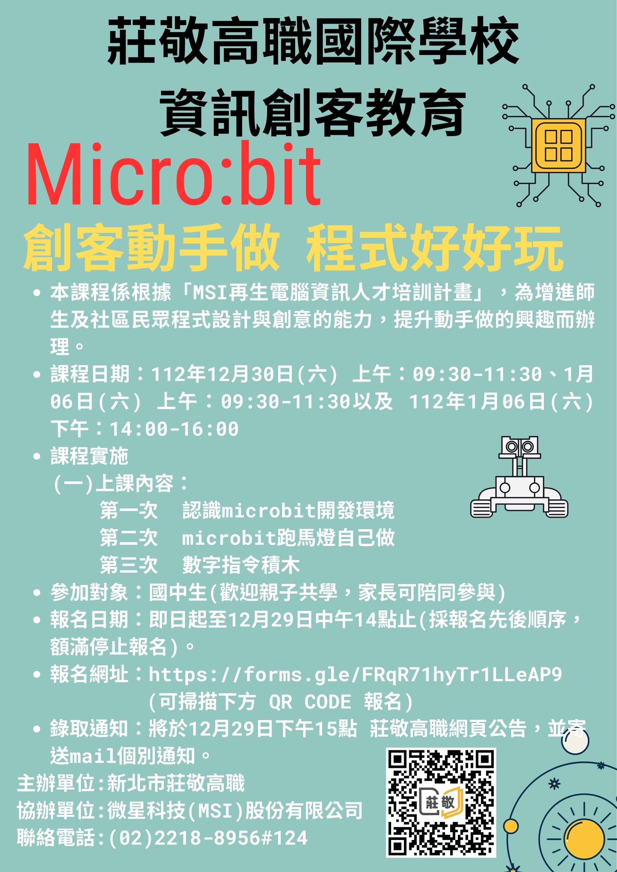 七、錄取通知:將於12月29日下午15點 莊敬高職網頁公告,並 寄送mail個別通知。 主辦單位:微星科技(MSI)股份有限公司 承辦單位:新北市莊敬高職 聯絡電話:(02)2218-8956#124