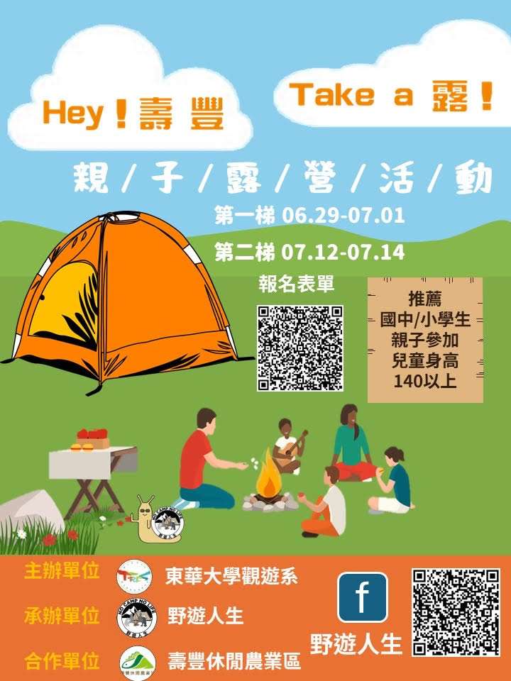 一、主辦單位:國立東華大學觀光暨休閒遊憩學系畢專團隊-野 遊人生、壽豐鄉休閒農業區。