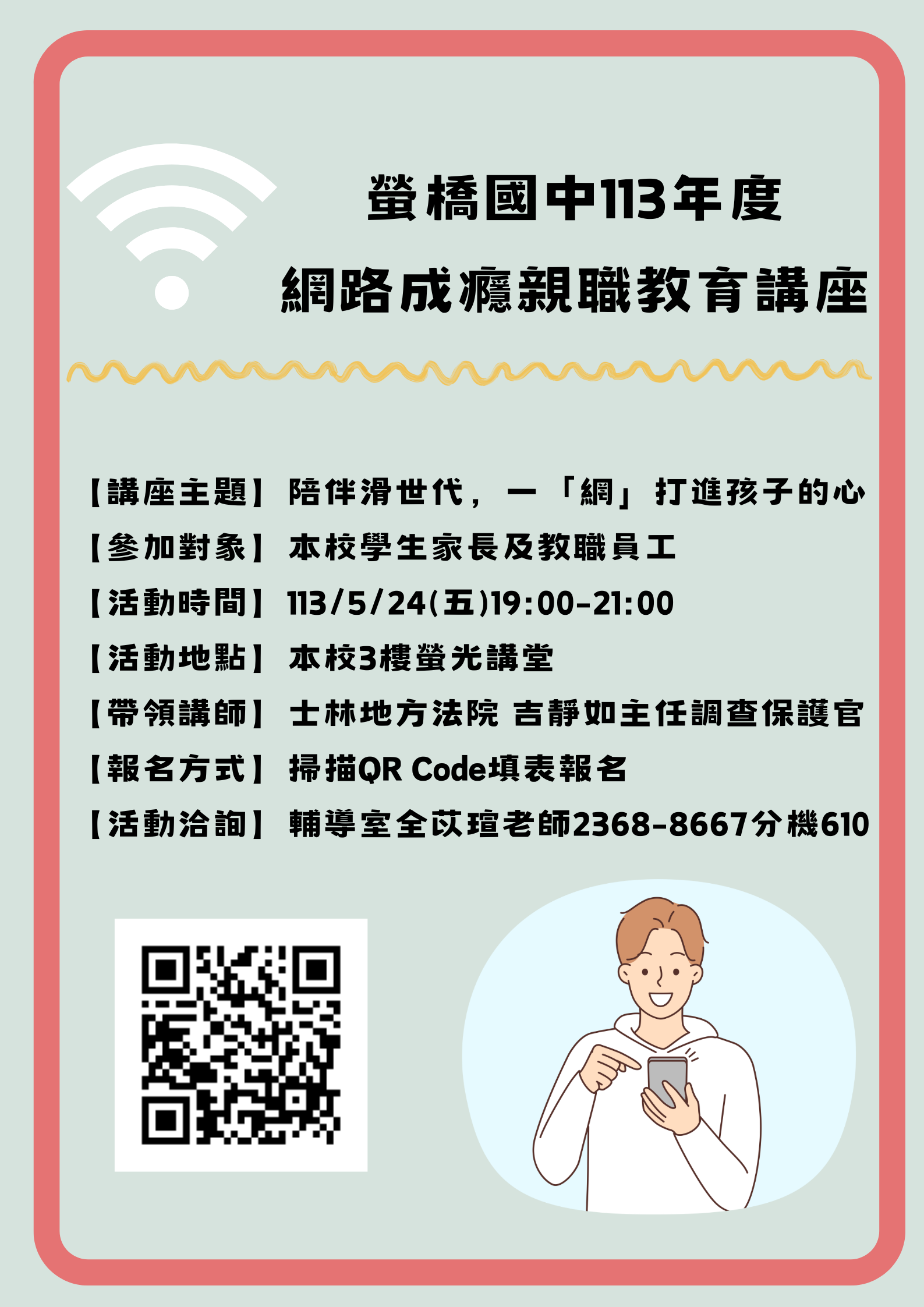 一、講座主題:陪伴滑世代,一「網」打進孩子的心