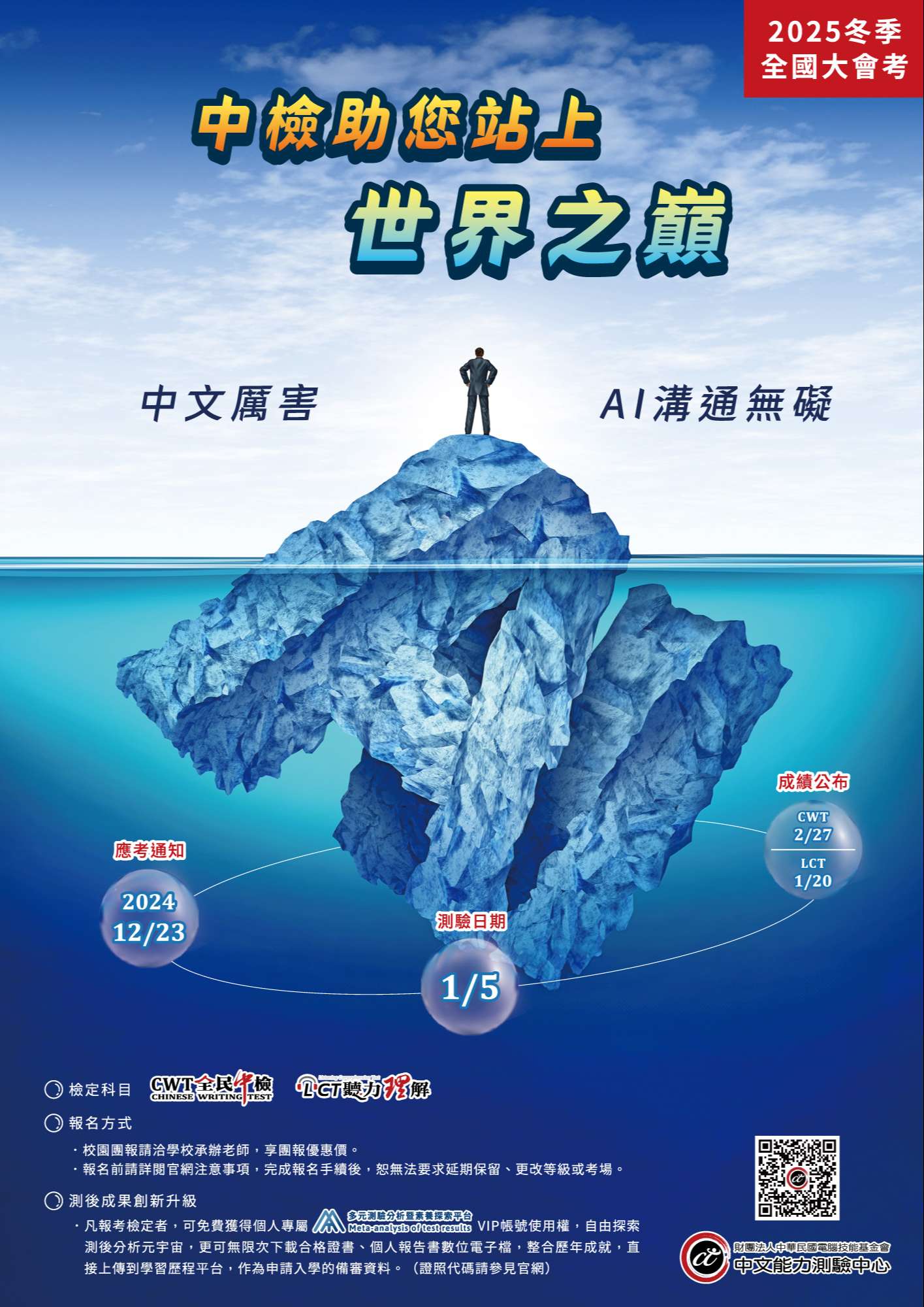 三、報名期自2024年9月10日起至12月4日截止,如貴校報名人 數滿100人(含)以上,可向本中心申請在校施測優惠專案。