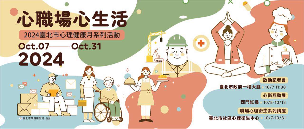 二、本府衛生局近期辦理「2024心理健康月-『心職場心生 活』」系列活動,請協助 宣傳。