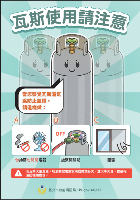 二、因應近期發生臺中百貨氣爆致民眾傷亡事件,114年3月規 劃本府各級機關學校協助運用旨揭資訊進行「瓦斯使用請 注意」宣導,以提升教職員工生防災意識,降低災 害發生 機率。