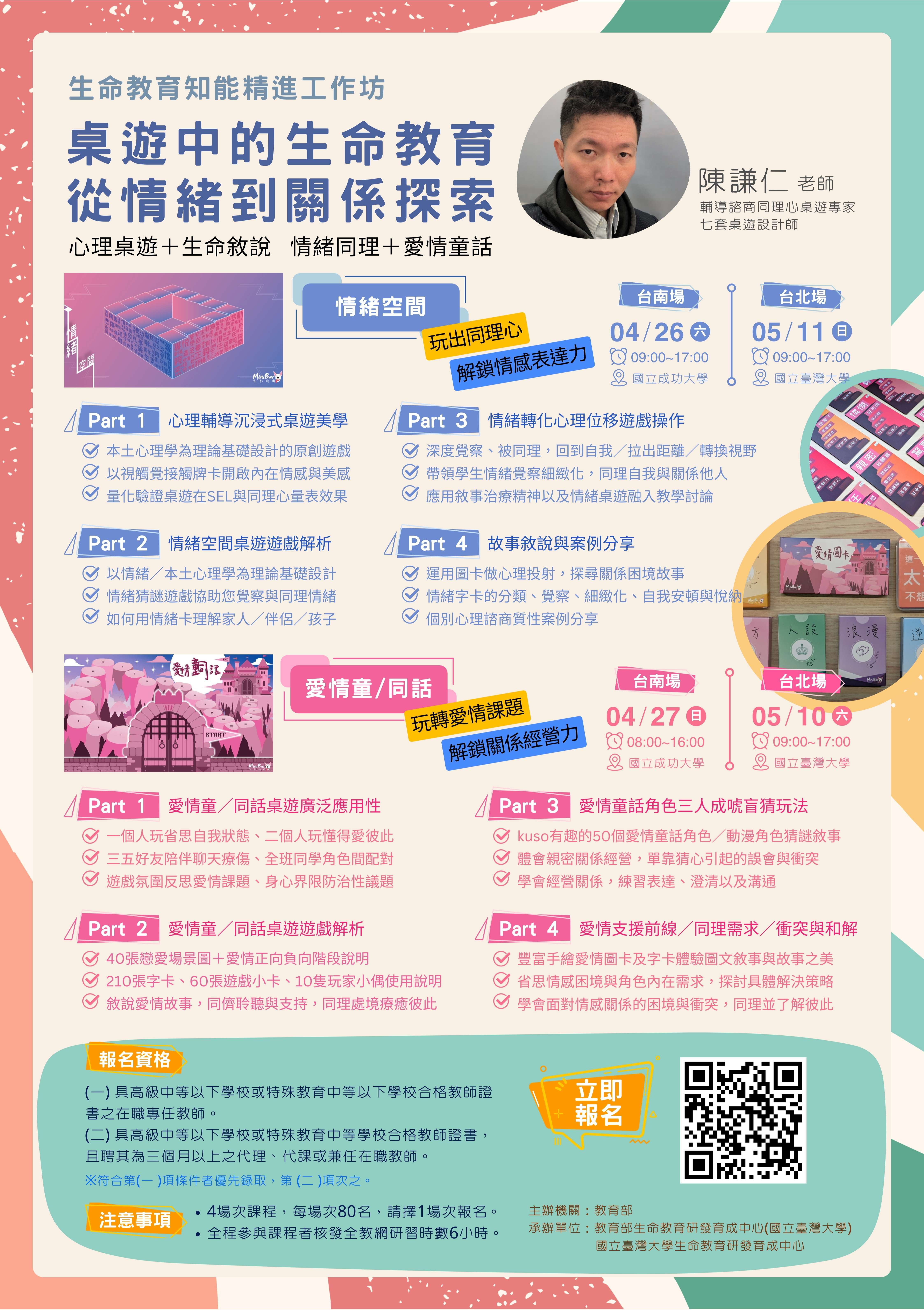 二、本研習規劃辦理4場次,詳細內容請參閱附件簡章及海報。