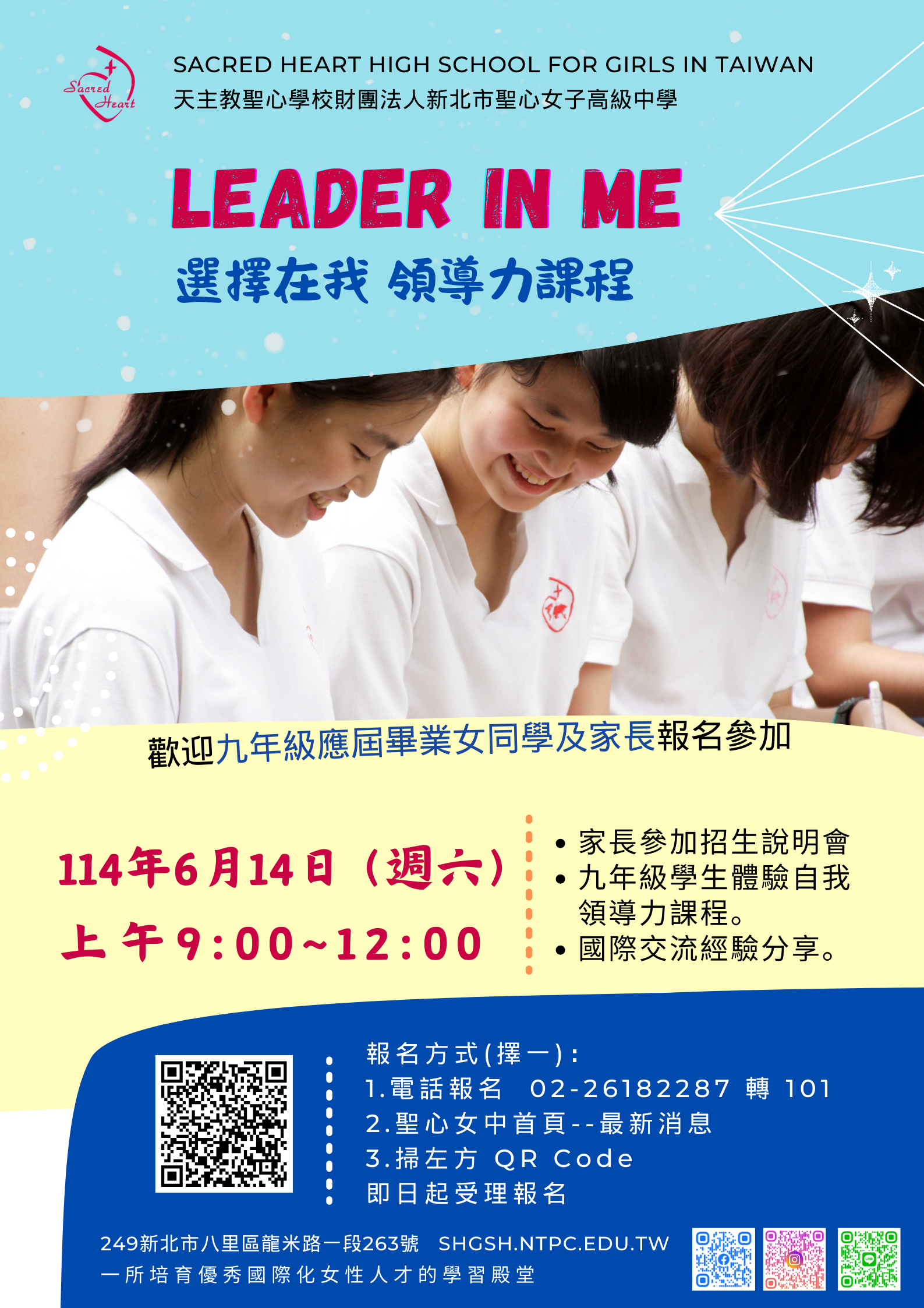 三、報名方式: (一) 報名表連結:https://forms.gle/6xHtKqbBq3RRShT7A (二) 或至聖心女中首頁www.shgsh.ntpc.edu.tw—最新消息 報名。