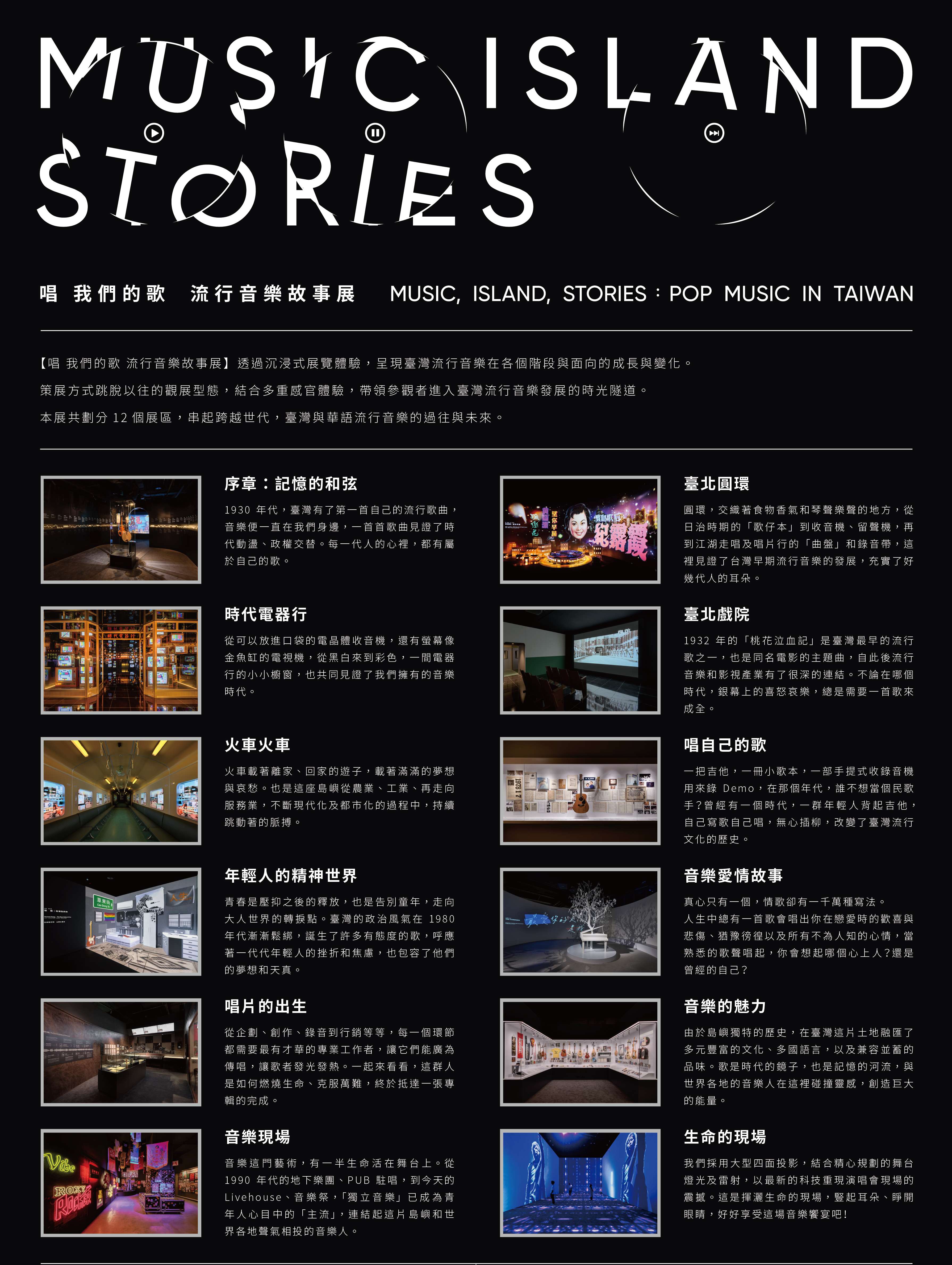 二、本館策劃【唱 我們的歌 流行音樂故事展】常設展,旨在 呈現臺灣流行音樂的演進史,透過沉浸式展覽體驗,呈現 臺灣流行音樂在各個階段與面向的成長與變化,自開展以 來,廣受觀眾的喜愛,累計已達20餘萬人次參觀,相關資 料【唱 我們的歌 流行音樂故事展】詳如附件一。