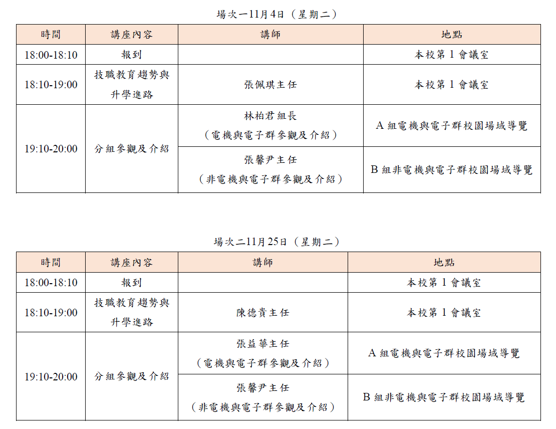 一、第一場次欲參與活動者,請於114年10月29日(星期三)前於以下網址填寫報名https://forms.gle/5SVGXKXJDqQmpdb59,另因場地限制,名額有限,若參加國中生家長額滿將自動關閉本表單。