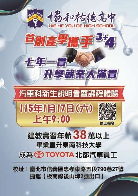 協和祐德高中汽車科首創3+4產學攜手,