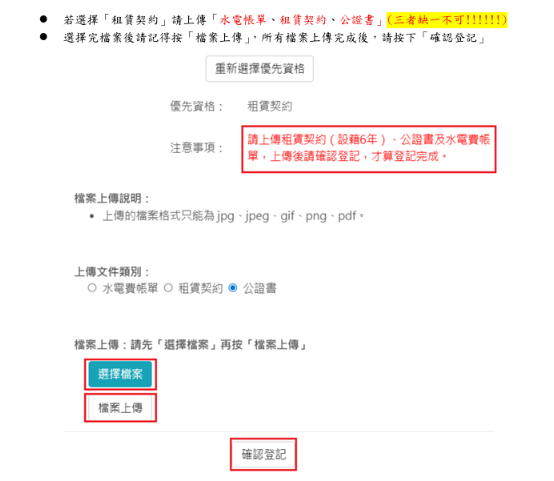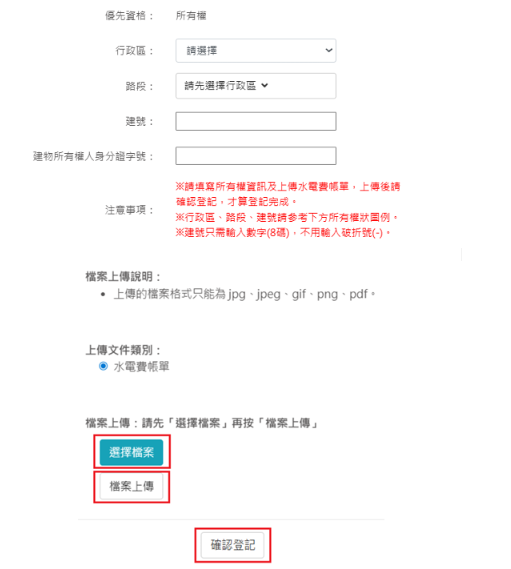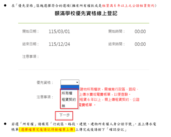 然後 選擇 您所具備的資格 ( 所有權 / 6年以上經公證租賃證明 / 無 )