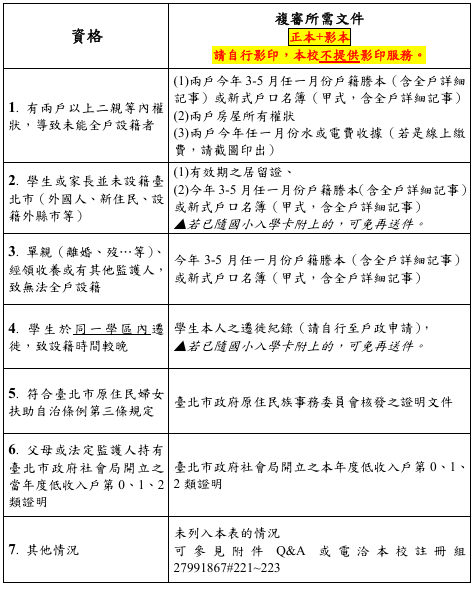 簡而言之,只有全戶共同設籍(父+母+子 同戶),且具有所有權狀(或公證租賃證明者),可以完全線上複審,無須來本校。